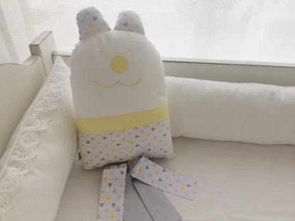 O Soninho Amarelo e Cinza é muito fofinho, feito em tecido de algodão com enchimento de fibra siliconizada. Bordado à mão, tem o nariz de amarelo e detalhes em amarelo e cinza. As quatro perninhas também são feitas com tecido estampado com pequenos triângulos amarelos e cinza. Cada perna uma tem 18 cm cada. Esta macia almofada, mede 32 x 20 cm. Essa peça compõe as nossas coleções: Elefante Amarelo e Raposa